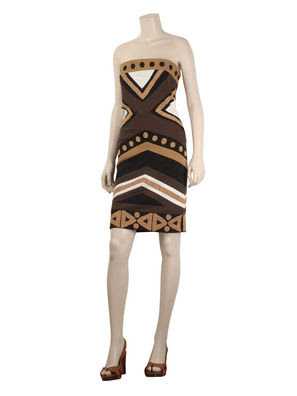- Ariki in Tribal: Fully lined strapless column dress with extensive decorative stitching at bust, waist, and hemline, layered chevrons, and hidden side zip; Material: 70% Rayon/26% Nylon/4% Spandex; Retail price: $1275 (inclusive of sales tax and delivery to me) -- ON SALE! -- US6 is the LAST ONE!